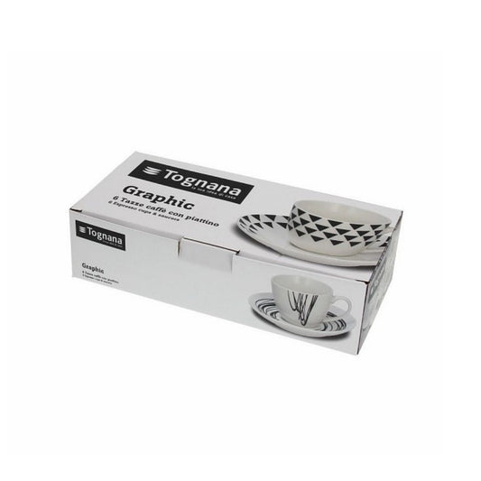 Set 6 tazze caffè con piattino coordinato Linea Metropolis Graphic Tognana