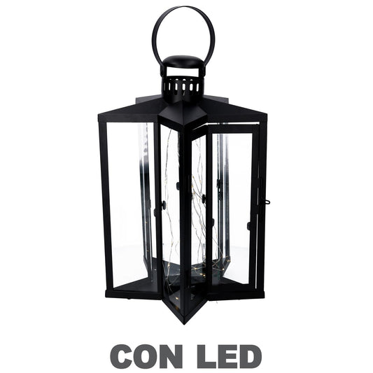 Lanterna led metallo stella nero cm27,5x27,5h42-48