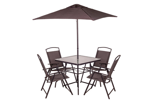 Set 6Pz con Tavolo, 4 Sedie e Ombrellone Marrone - 165x65x112 cm