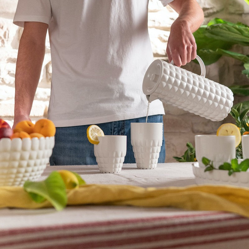 Caraffa Tiffany con coperchio creata in pregiato materiale plastico, perfetta per l’outdoor ma in grado di impreziosire ogni tipo di tavola.