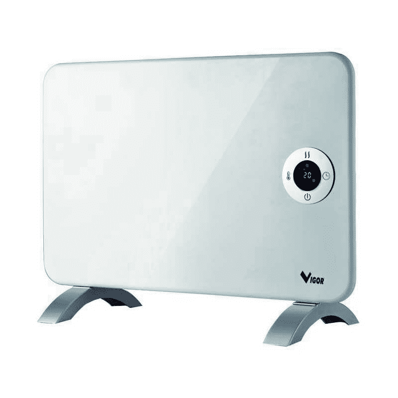 Pannello riscaldante bianco dallo spessore ridotto e dal design moderno, con base per il posizionamento a tavolo o a pavimento, è ideale per integrare un riscaldamento centralizzato preesistente in punti della casa dove si richiede un apporto e percezione maggiore di calore radiante o in locali dove un sistema centralizzato sia inesistente.