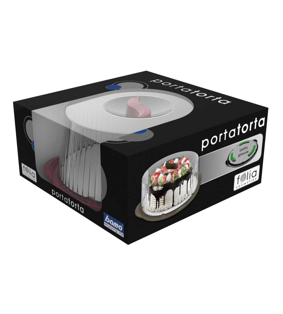 Con grande base dotata di impugnature per una presa facile e sicura, coperchio trasparente, piatto girevole per maggiore praticità, utilissimo anche per il Cake Design.