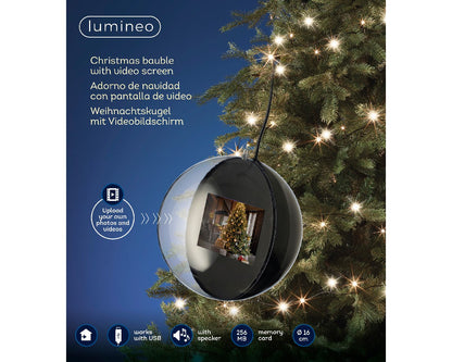Sfera decorativa con un piccolo schermo, il quale permette di visualizzare immagini e video.