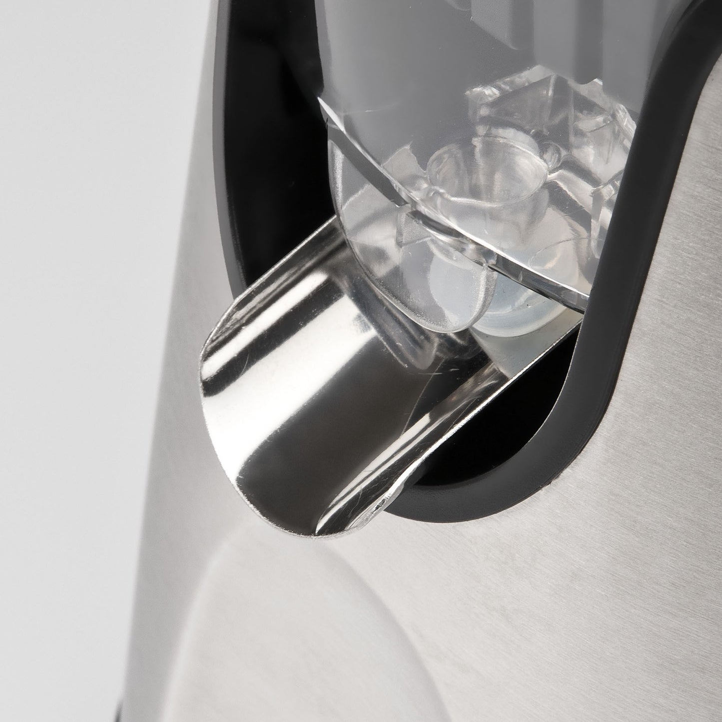 Il comodo braccio consente di fissare l'agrume ed esercitare una pressione che fa azionare il motore. La rotazione e la pressione del braccio spremono il frutto, senza che tu debba fare alcuno sforzo. Grazie al potente motore da 85W, si possono ottenere in pochi istanti spremute perfette come al bar.