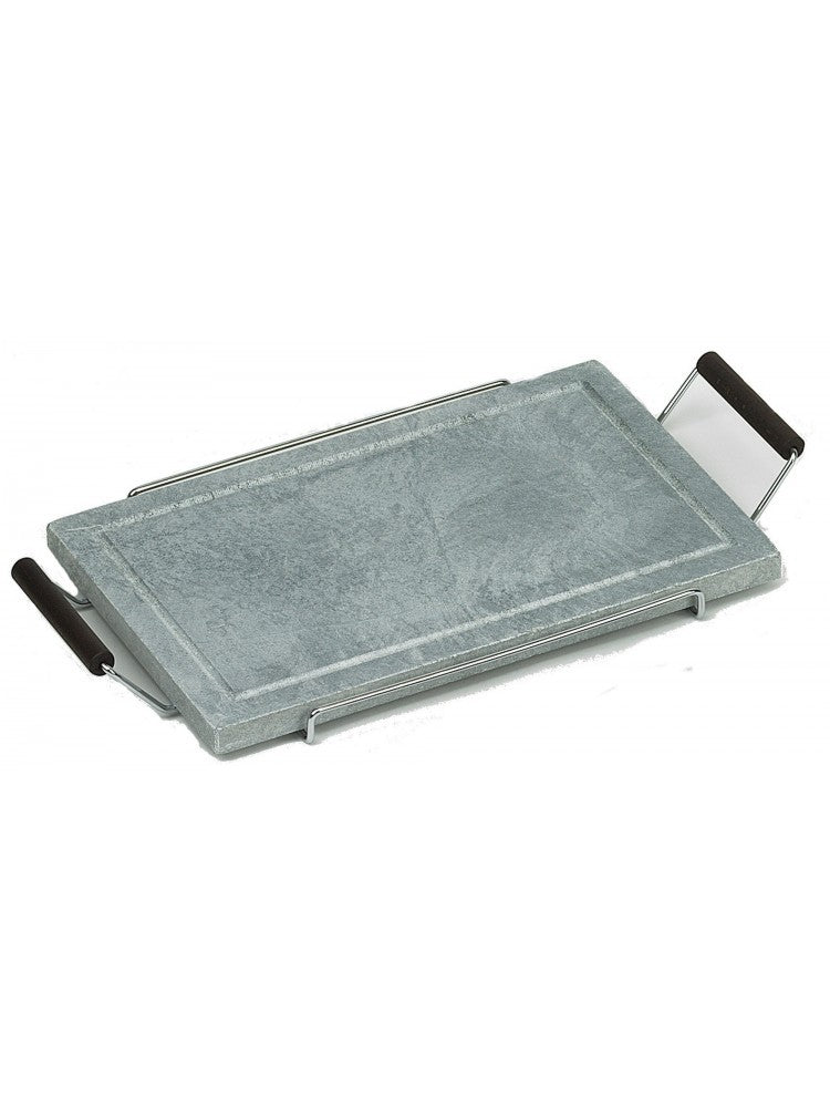 Le piastre in pietra ollare con telaio uniscono la genuinità della cottura su pietra alla pratica struttura in metallo, con manici color wengè, per cucinare e servire le proprie portate con stile e facilità.