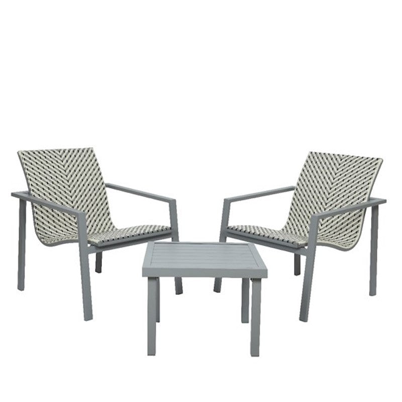 Il Salotto Quebec 3 pezzi grigio è perfetto per il tuo spazio esterno. Questo set include due comode poltrone e un elegante tavolino. La struttura è realizzata in ferro verniciato, garantendo resistenza e durata nel tempo.