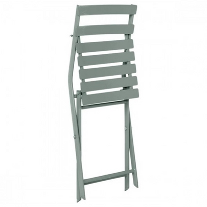 Sedia da esterni in acciaio, resistente ai raggi UV. Pratica, pieghevole e maneggevole. Dimensioni in cm: 51 x 42 H 80. Peso massimo supportato: 110 kg.
