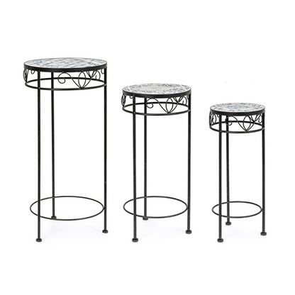 Struttura in acciaio trattato per l'esterno (e-coating) e verniciato a polvere epossidica. Piano in ceramica.