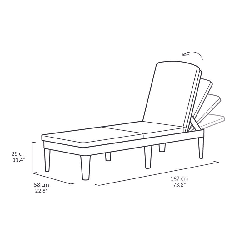 Goditi dei piacevoli momenti di relax con Jaipur. Realizzato con particolare finitura che riproduce l'intrecciatura tipica del rattan è dotato di schienale reclinabile in 4 diverse posizioni. Facile da assemblare e grazie alla possibilità di richiuderlo facilmente, è perfetto per occupare piccoli spazi nei mesi più freddi dell'anno. Realizzato con resina durevole e resistente agli agenti atmosferici. Non sbiadisce e non scolorisce. Elegante finitura che riproduce l'intrecciatura tipica del rattan. Schienale reclinabile in 4 diverse posizioni. Richiudibile per conservarlo nei mesi più freddi dell'anno anche negli spazi più raccolti. Dimensioni: L 187 x P 58 x H 29 cm.