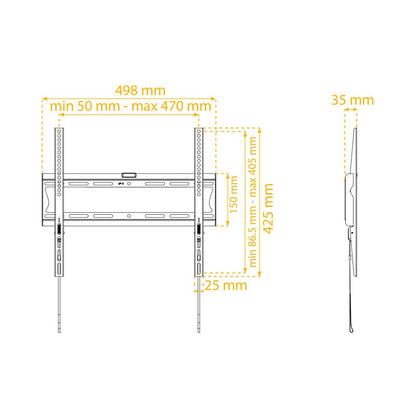 Permette di fissare alla parete un televisore LCD o LED con schermi da 106 a 140cm. Per schermi da 42'' a 55''. Vesa da 100 x 100 a 400 x 400. Staffa ultra-resistente che consente di sostenere un TV fino a 35kg. Livella a bolla integrata per assicurare una posizione perfettamente orizzontale. Con una distanza di soli 3,5cm tra il televisore e la parete è quasi invisibile. Ideale per risparmiare spazio. Installazione facilitata su pareti in muratura, calcestruzzo o legno.