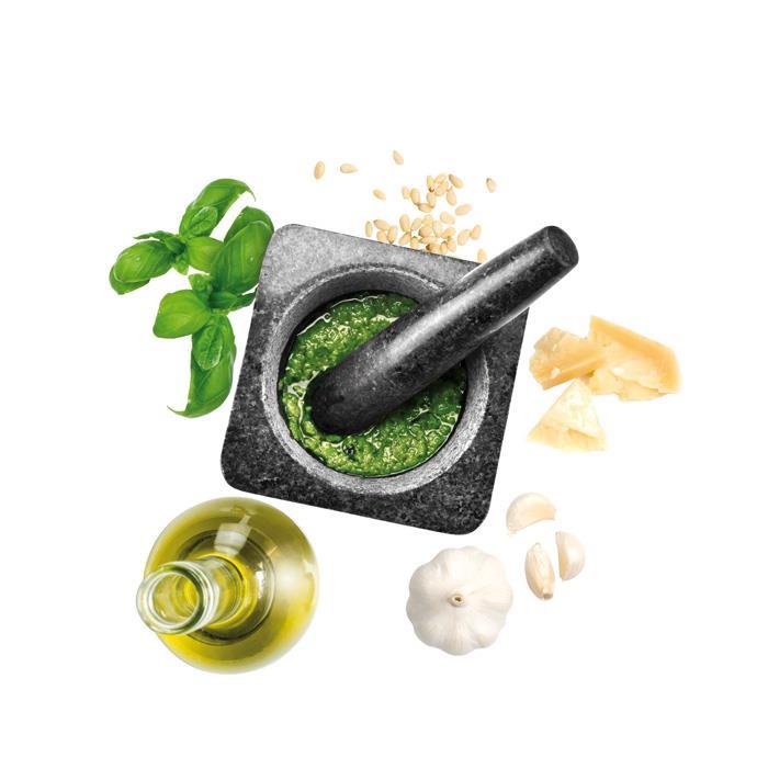 - Ideale per la preparazione del tradizionale pesto, erbe, spezie, condimenti, ecc;