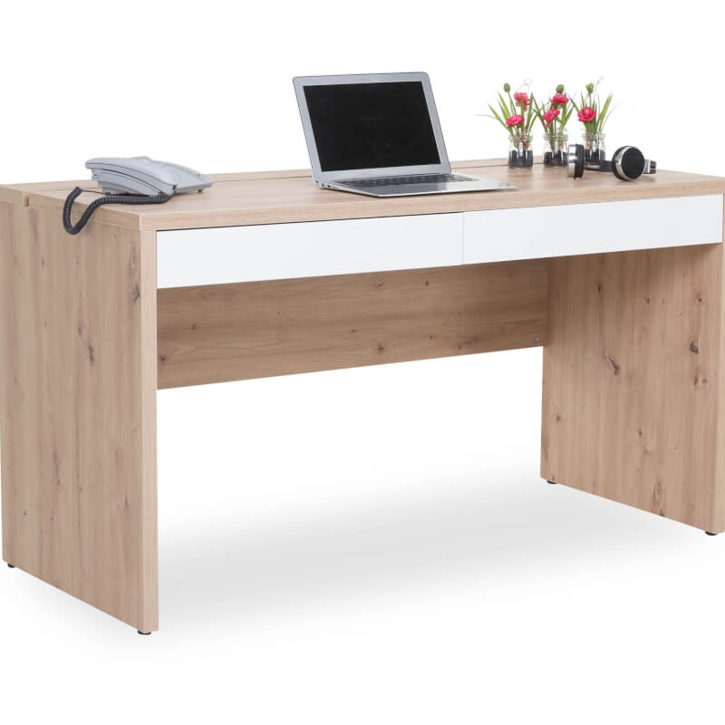 Scrivania con 2 Cassetti e Ribalta - Colore Rovere e Bianco - 139x60x76 cm