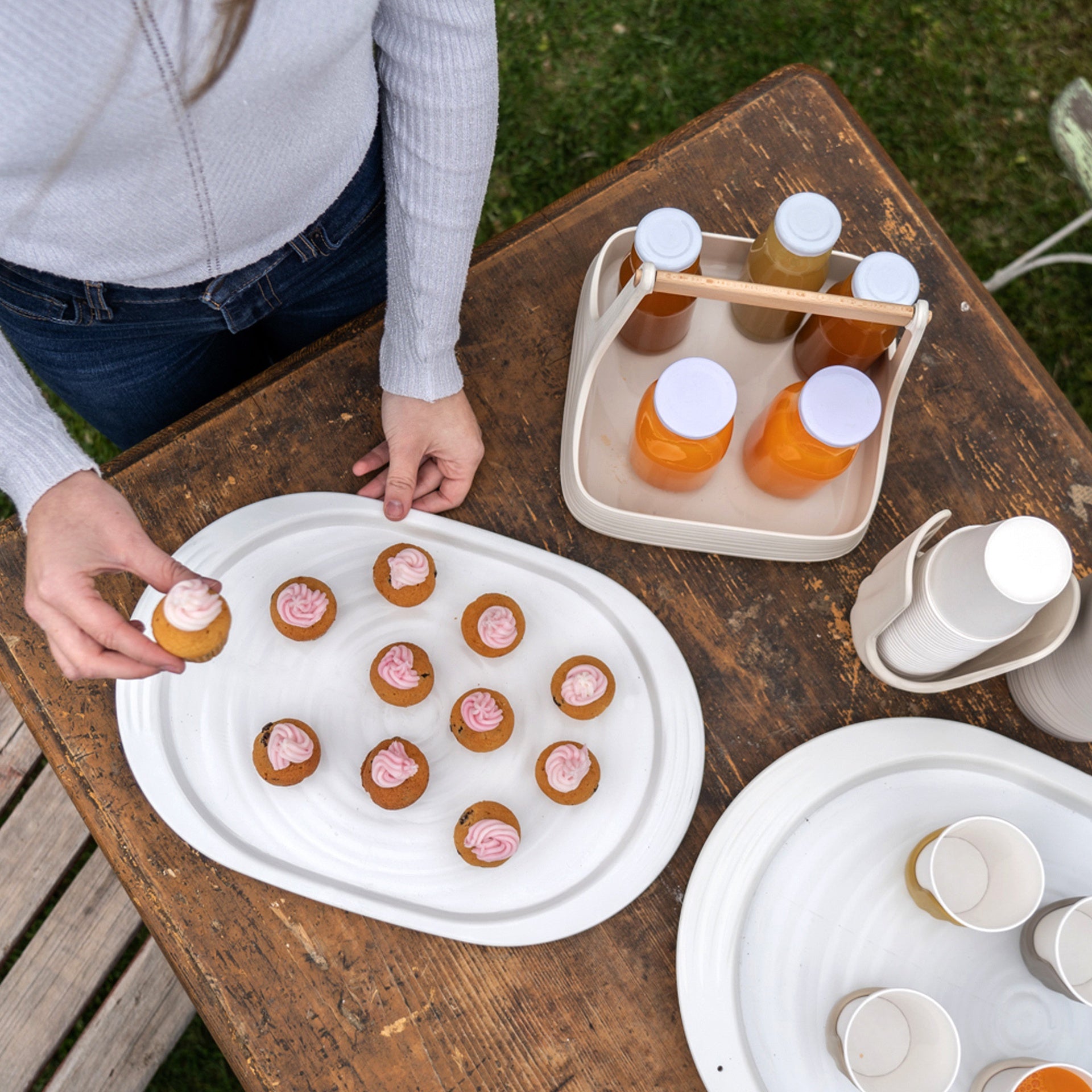 - Il vassoio dai bordi rialzati garantisce un'ottima prensilità e un corretto contenimento dei cibi all'interno di una superficie d'appoggio decisamente capiente;