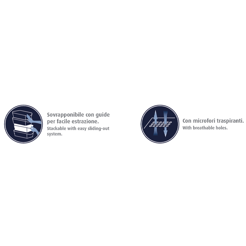 Inoltre, la Ubox è dotata di fori traspiranti che permettono una corretta circolazione dell'aria e mantenere gli oggetti al suo interno in perfette condizioni.
