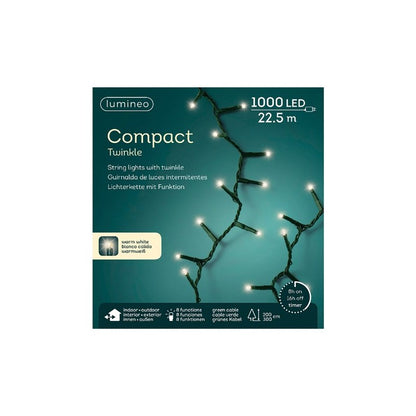 Le Luci di Natale Catena 1000 LED Calda sono perfette per creare un'atmosfera magica durante le festività natalizie. Queste luci compatte a LED offrono 8 diverse funzioni di effetto scintillio, ideali per decorare gli spazi esterni.