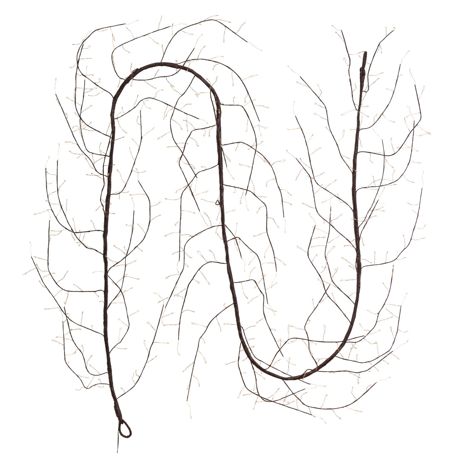 Ramo climber TIGLIO marrone con 3 metri di lunghezza e 36 rami. Questo ramo è dotato di 504 MicroLED bianco caldo con un diametro di 1,5 mm. Ogni LED ha una lunghezza di 3 cm e il cavo è realizzato in metallo rame. Il gioco di luce automatico FlashLED Diamond offre un mix di 448 LED a luce fissa e 56 LED lampeggianti veloci. Puoi fissare o appendere il ramo grazie agli anelli presenti alle estremità. I rami sono modellabili grazie alla loro anima in metallo. Il trasformatore SELV di sicurezza garantisce un utilizzo sicuro sia all'esterno che all'interno. Il cavo di alimentazione marrone ha una lunghezza di 4 metri. Le dimensioni totali del prodotto sono 4 metri + 300 cm. La scatola è colorata e il codice articolo è XKC Art. RAM TG 3MC M504-H.
