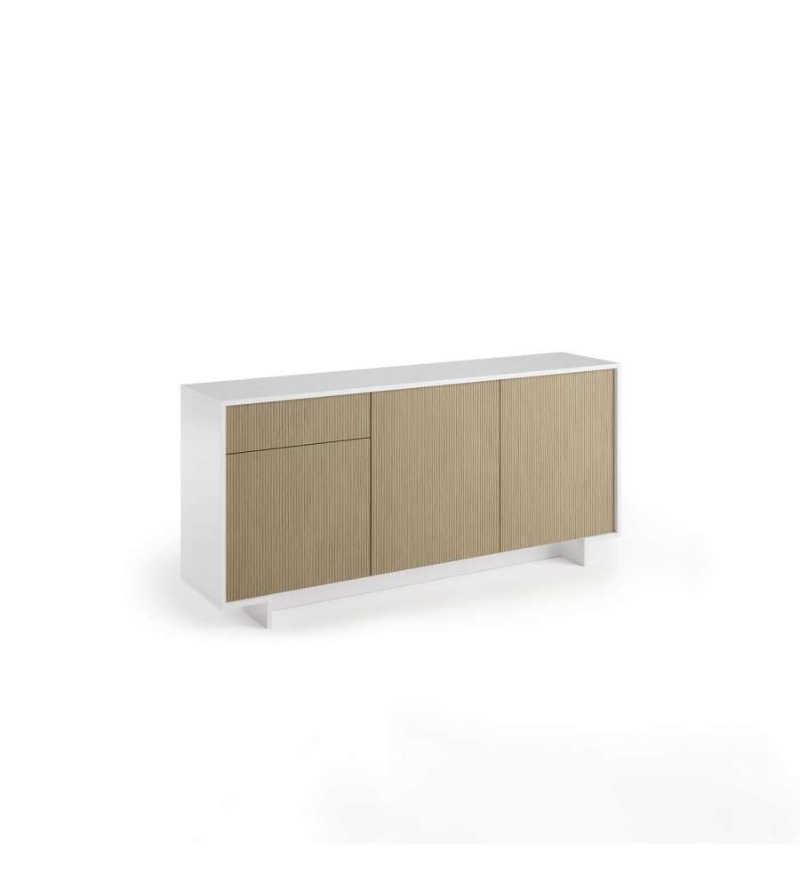 Madia 3 ante e cassetto bianco cannetè chiaro della linea Frame. Un'elegante madia, pratica e funzionale, adatta ad ogni ambiente. Ampia capacità interna grazie al grande doppio vano, al vano laterale e al cassetto superiore. Il sistema di chiusura push pull, senza maniglie, la rende ancora più comoda e facile da utilizzare. Realizzata interamente in Italia, questa madia è un prodotto di qualità. Le sue dimensioni sono di 170x42x78 cm, ideali per adattarsi a diversi spazi. Aggiungi stile e funzionalità al tuo arredamento con la madia 3 ante e cassetto.