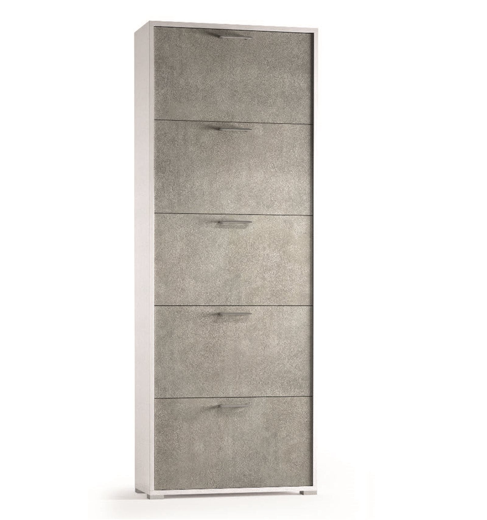 Realizzata in un moderno colore bianco/cemento, questa scarpiera si adatta perfettamente a qualsiasi stile di arredamento della tua casa. Il suo design accattivante si unisce all'efficienza dell'utilizzo per garantire un posizionamento preciso delle tue scarpe.