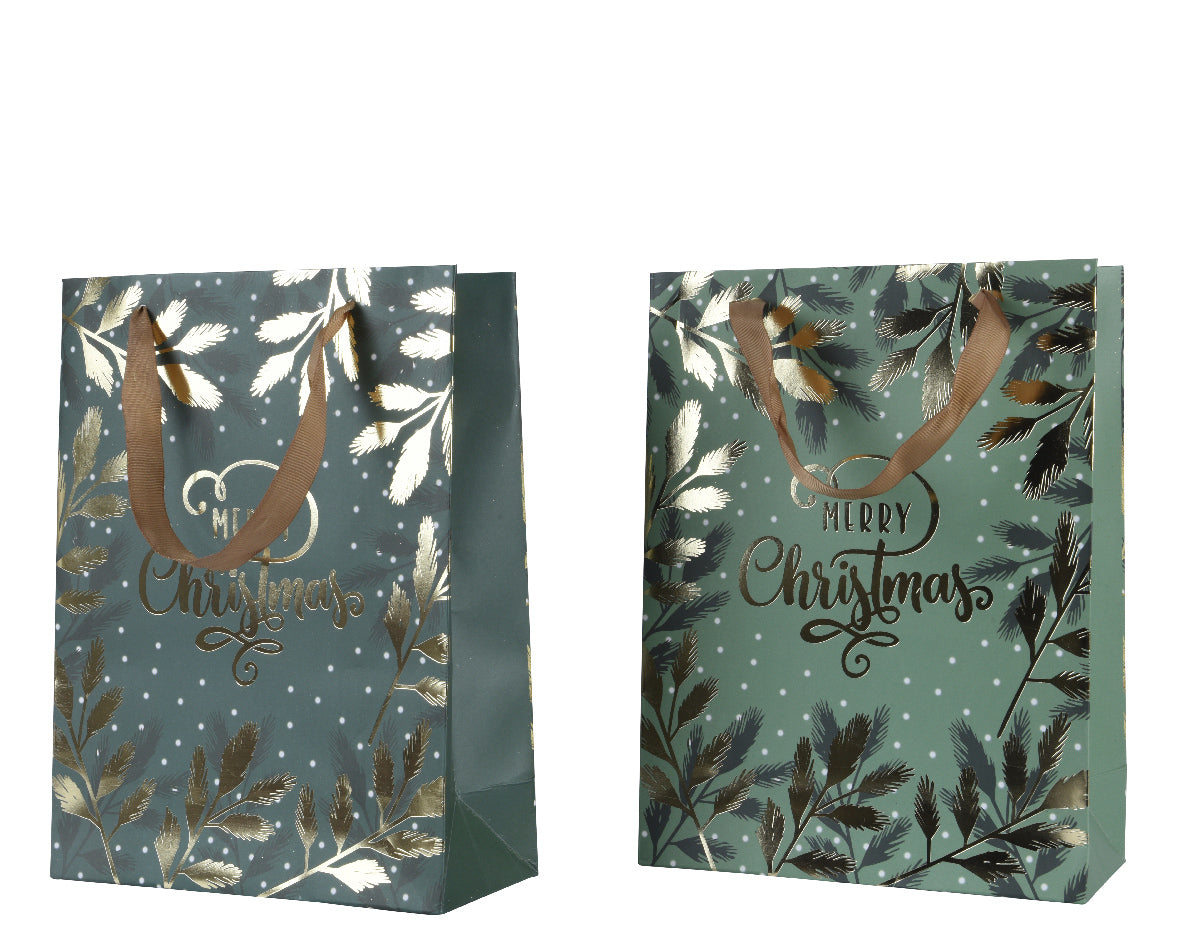Sacchetto regalo rettangolare con testo brillante a foglia e manico 2 colori assortiti 12 x 30 x 42 cm