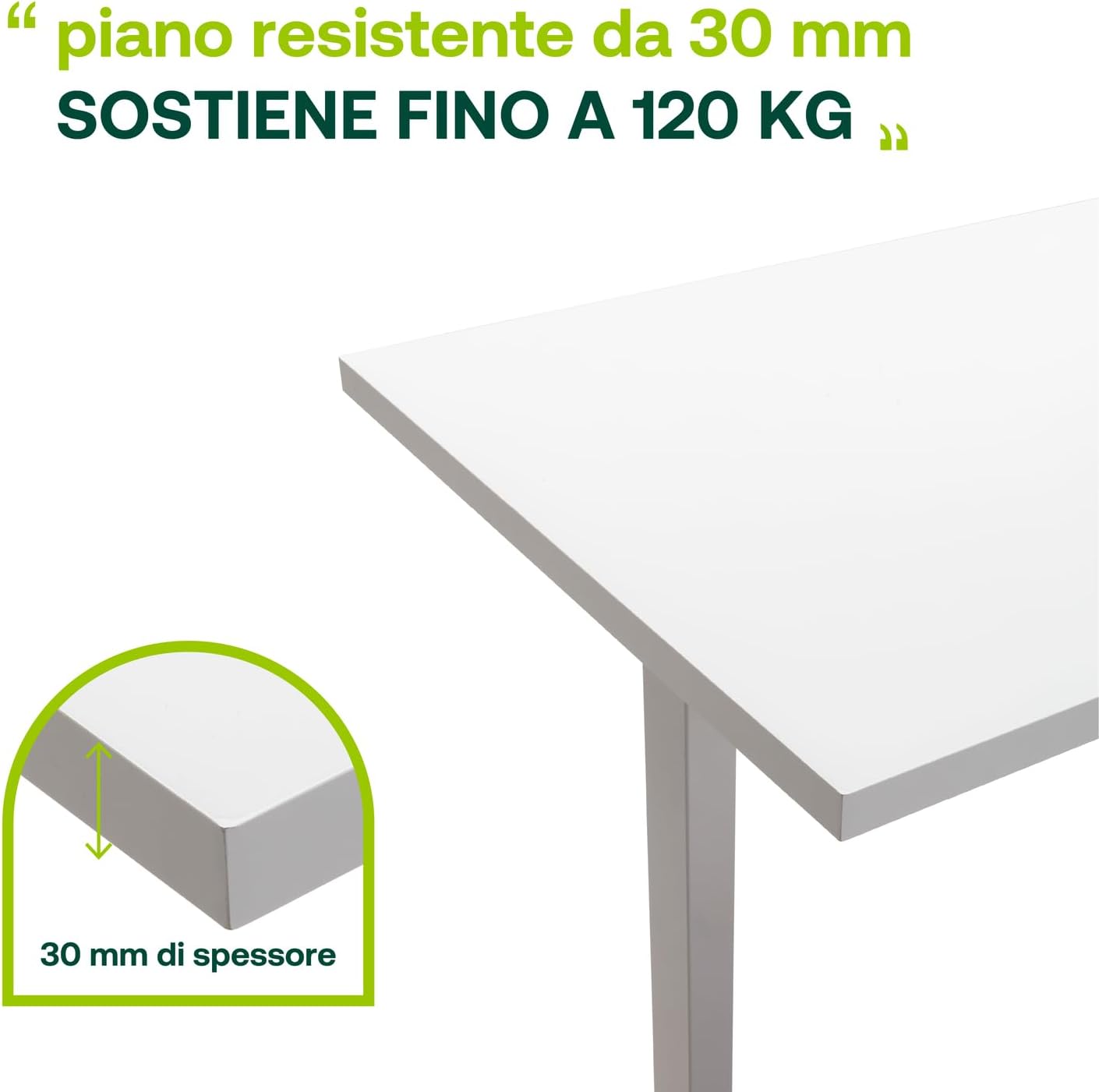 - Flessibilità Ergonomica e Design Raffinato: La Scrivania Regolabile in Altezza della Linea ENERGIA offre una flessibilità ergonomica senza pari, con quattro opzioni di altezza regolabile (da 79 cm a 125 cm). Il suo design elegante, con il piano color bianco laccato di dimensioni 150x69 cm e le robuste gambe in metallo bianco, non solo si integra perfettamente in qualsiasi ambiente lavorativo, ma aggiunge anche un tocco di raffinatezza.