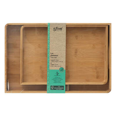 Set di 2 vassoi da portata in bambù - 46,60 x 30,40 x 5 cm