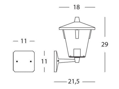 Applique in pressofusione di alluminio. Diffusore in termoplastico trasparente. Altezza max lampada: 140mm. Alimentazione 230 V ~ 50 Hz. Classe di protezione: IP44 Potenza massima lampade: 60W