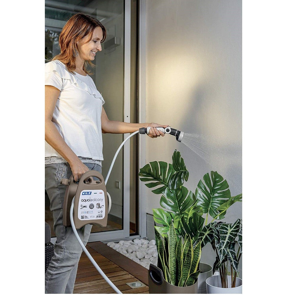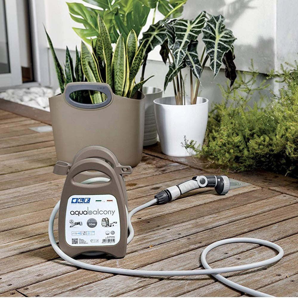 Kit sella portatubo per l'irrigazione di piante e fiori e la pulizia di superfici esterne.