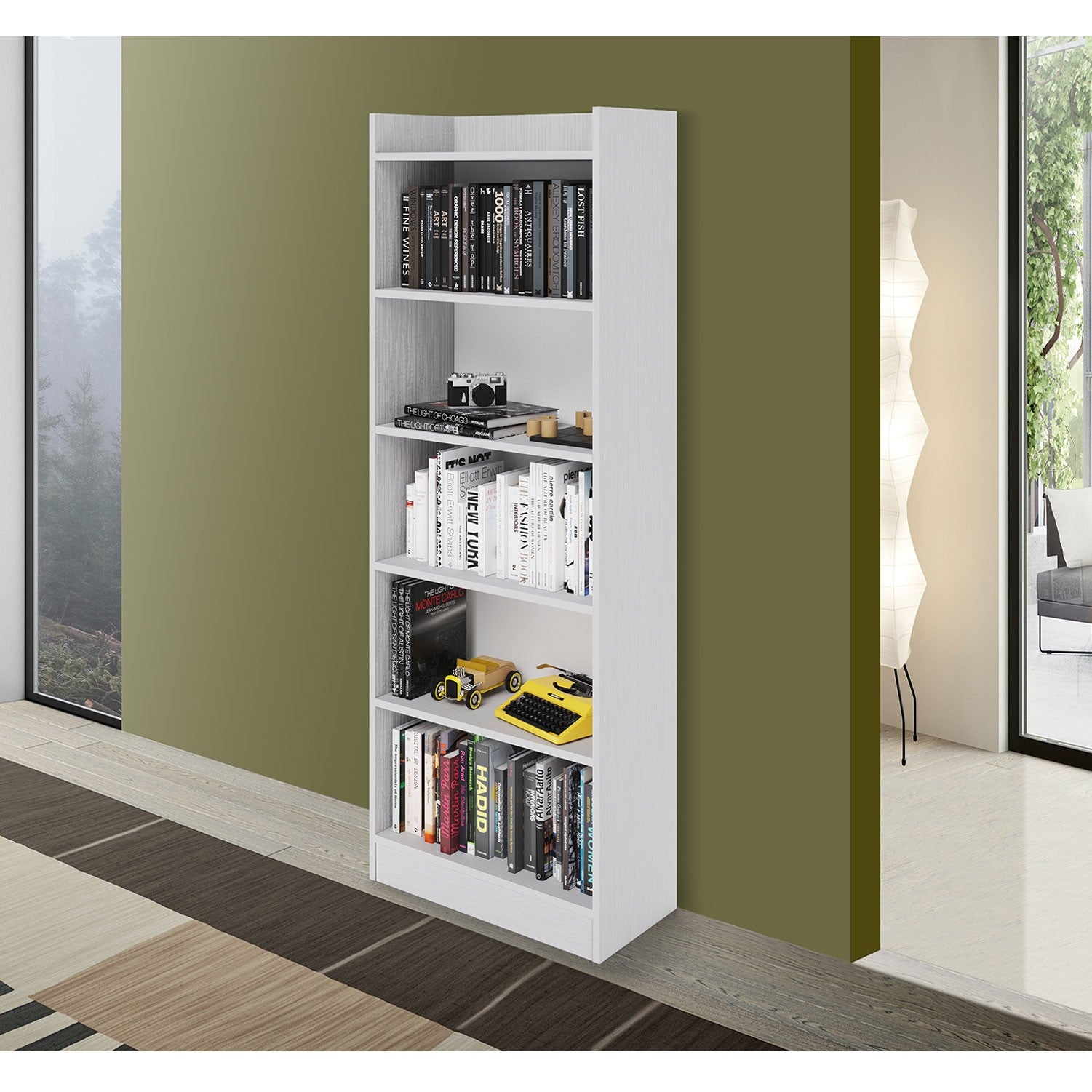 Libreria 5 ripiani bianco frassinato