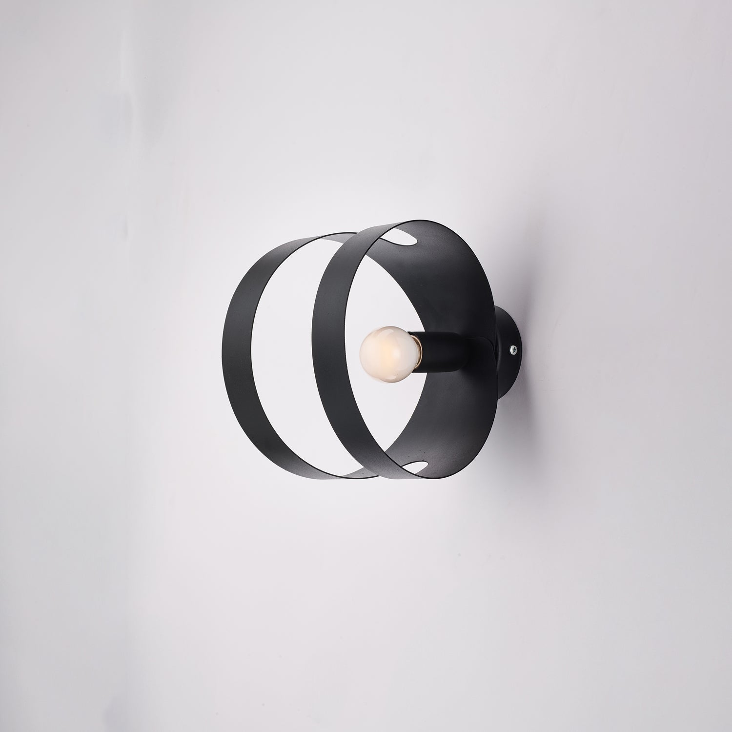 Applique in ferro laccato nero con fascia tagliata a laser 1 luce H.19 - L.14 - P.22
