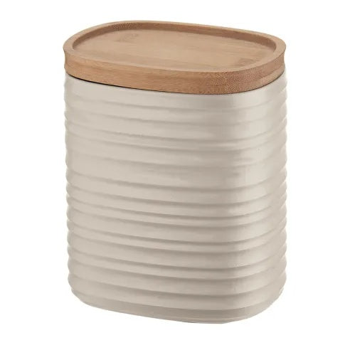 Il barattolo è ideale per conservare zucchero, sale, ma anche spezie e caffè. Realizzato riciclando 6 bottiglie d'acqua usa e getta 100% post consumo. Il coperchio, in legno di bamboo, è salvafreschezza. Capacità 1000cc. Lavabile in lavastoviglie.