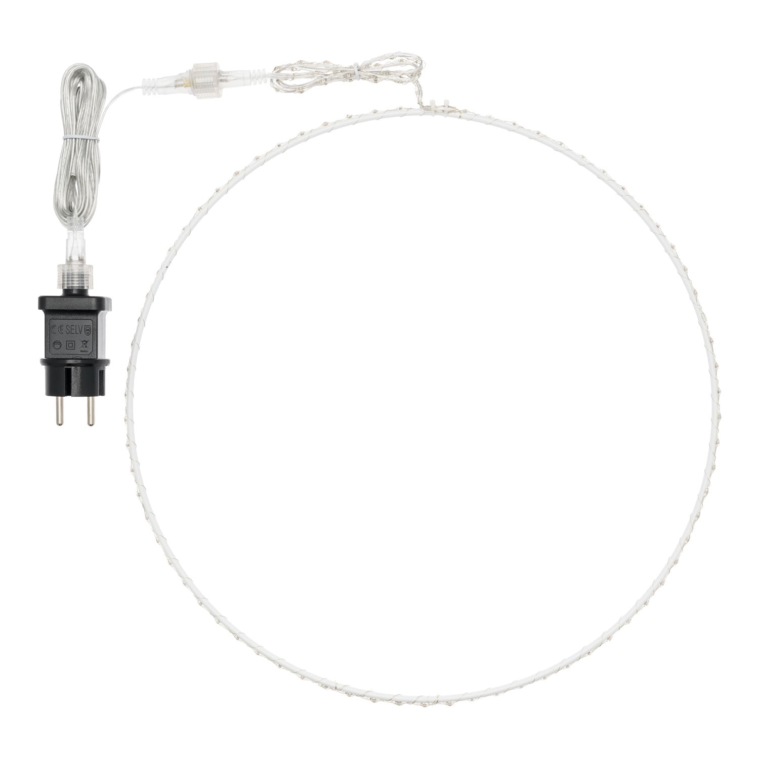 Il cerchio LT ø37cm 2D 105 MicroLED è un'illuminazione innovativa e colorata, ideale per decorare gli ambienti sia interni che esterni. Con i suoi led lampeggianti a velocità variabile, offre un gioco di luce automatico che rende qualsiasi spazio più vivace. Il telaio in metallo bianco e il cavo luminoso di 50cm aggiungono un tocco di eleganza e modernità. Inoltre, il trasformatore a bassa tensione è sicuro, classificato IP44 per uso esterno e interno, garantendo una maggiore versatilità. La lunghezza totale è di 4m più 50cm, con un pratico cavo di alimentazione trasparente da 4m.