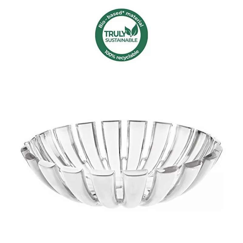 Un oggetto elegante e funzionale realizzato in materiale bio-based: una moderna plastica biologica proveniente da scarti e residui di biomassa vegetale, quindi rinnovabile di origine non fossile e 100% riciclabile. Il prodotto è realizzato al 60% con plastica a base biologica. La plastica è riconducibile al materiale di scarto biologico attribuito a questo prodotto tramite l’approccio del bilancio di massa ISCC. Ideale per portare in tavola pane, dolcetti o frutta secca, è perfetto anche come complemento d’arredo.