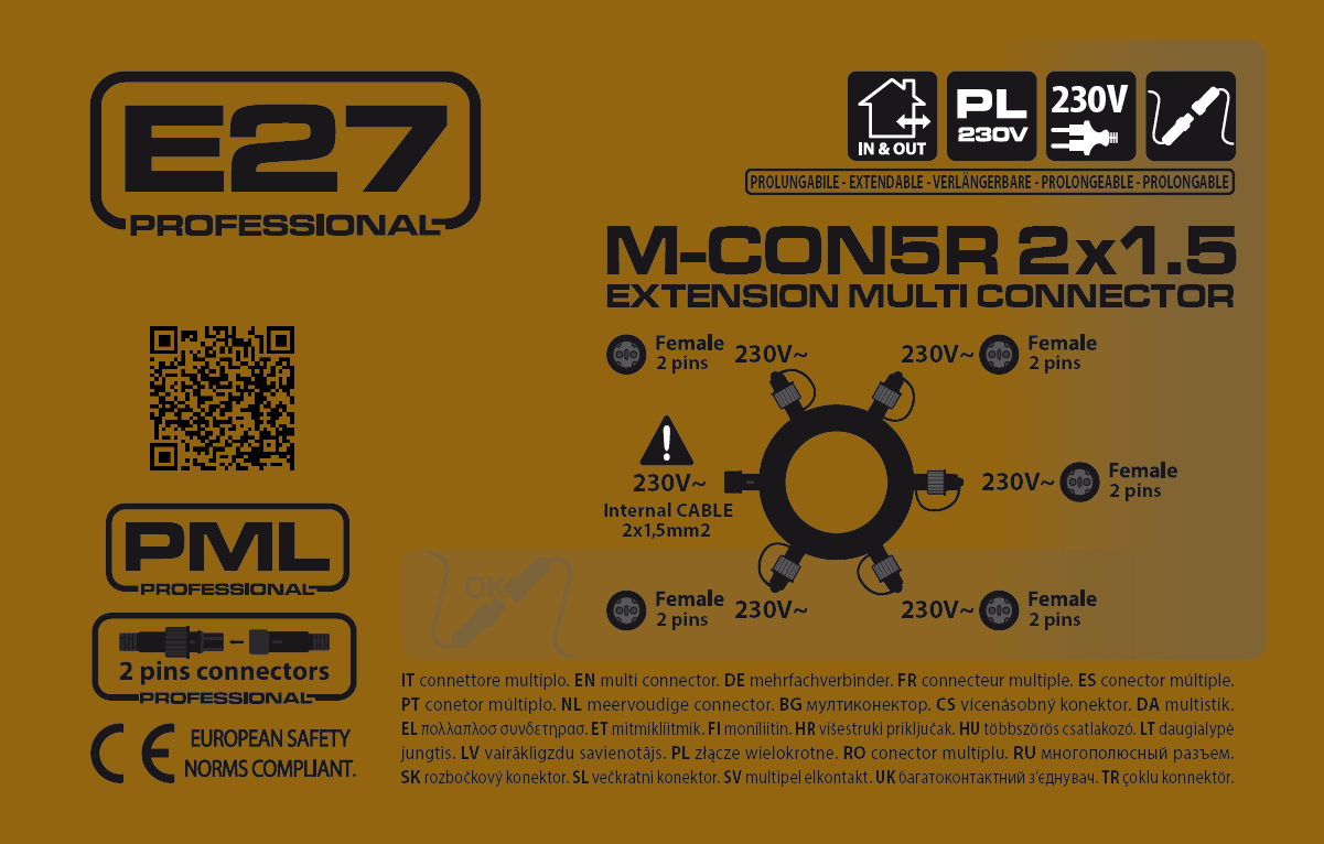 Connettore multiplo circolare rigido 5 uscite 2x1.5 230V AC
