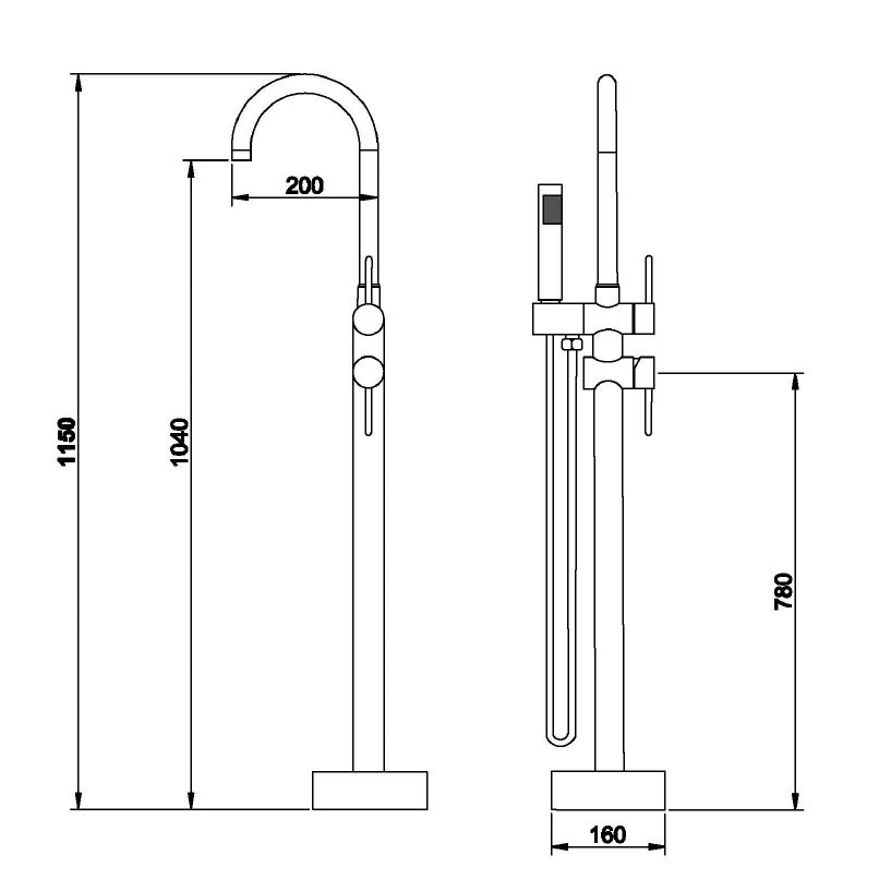 Il Miscelatore monocomando a pavimento per vasche freestanding è la soluzione perfetta per aggiungere un tocco di stile e funzionalità al tuo bagno. Con le sue dimensioni di 160 x 1150 mm, questo miscelatore si adatta perfettamente alle vasche freestanding, offrendo un design elegante e moderno.