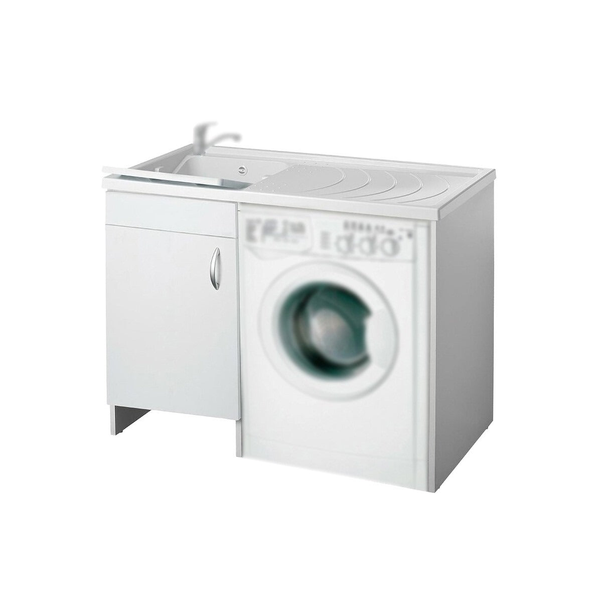 Il lavello è inserito in un piano unico che include la lavatrice e diventa pratico piano d'appoggio. Realizzato con un mobile in truciolare e una vasca in polipropilene, questo lavello offre una soluzione pratica e funzionale per la tua cucina o lavanderia.
