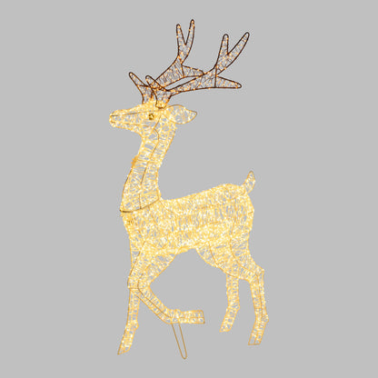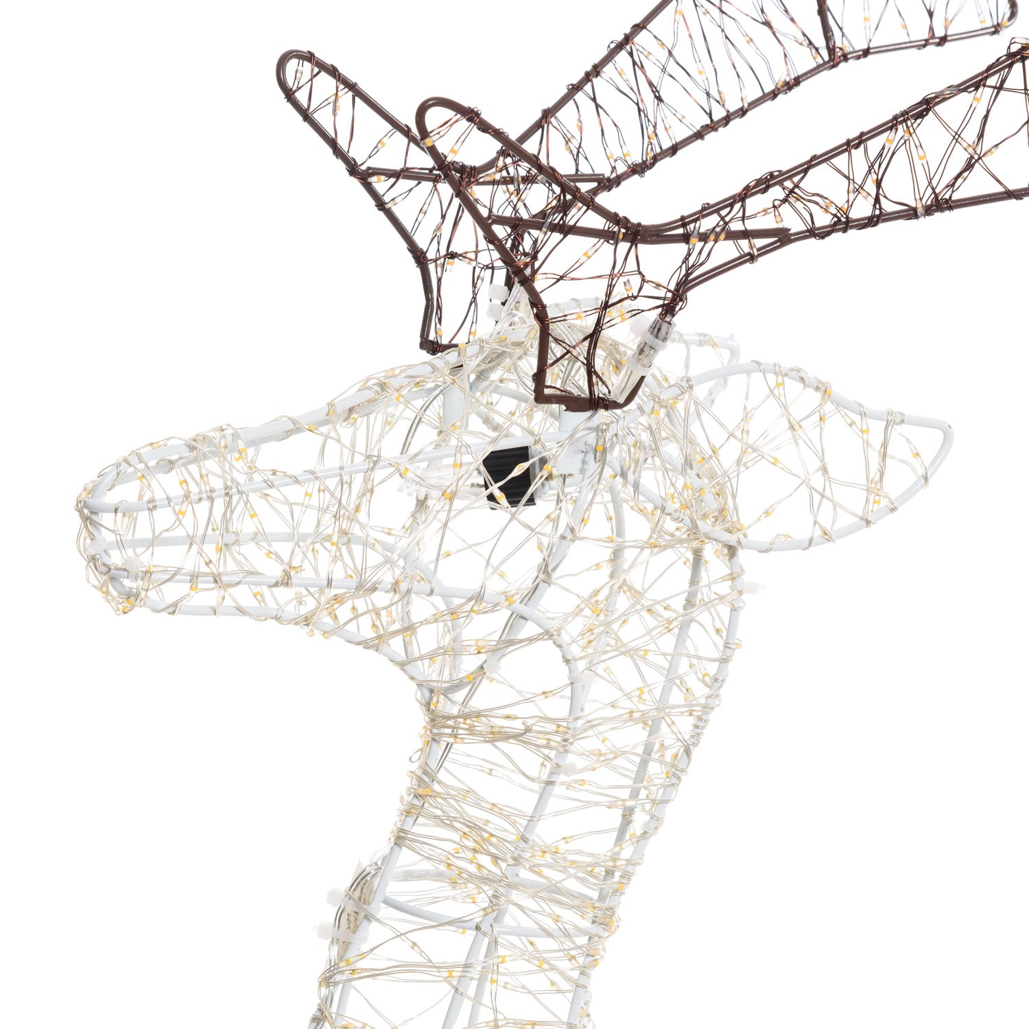 Scopri la meravigliosa renna 3D alta 105cm, dotata di zampa alzata. Questo decorazione natalizia è realizzata con la serie HDM ad alta densità di MicroLED, che offre un'illuminazione sorprendente grazie alla combinazione di luce tradizionale e bianco caldo. Il prodotto è fornito di un cavo Metal Pro e un telaio in metallo verniciato, garantendo robustezza e stile. Inoltre, include un gioco di luce automatico FlashLED Diamond, composto da led luce fissa e led con lampeggio veloce. Adatta per uso sia esterno che interno, la renna è alimentata da un trasformatore di sicurezza GS IP44. Con un cavo di alimentazione trasparente di 6m, potrai posizionarla facilmente ovunque desideri per rendere il tuo spazio festivo ancora più luminoso.