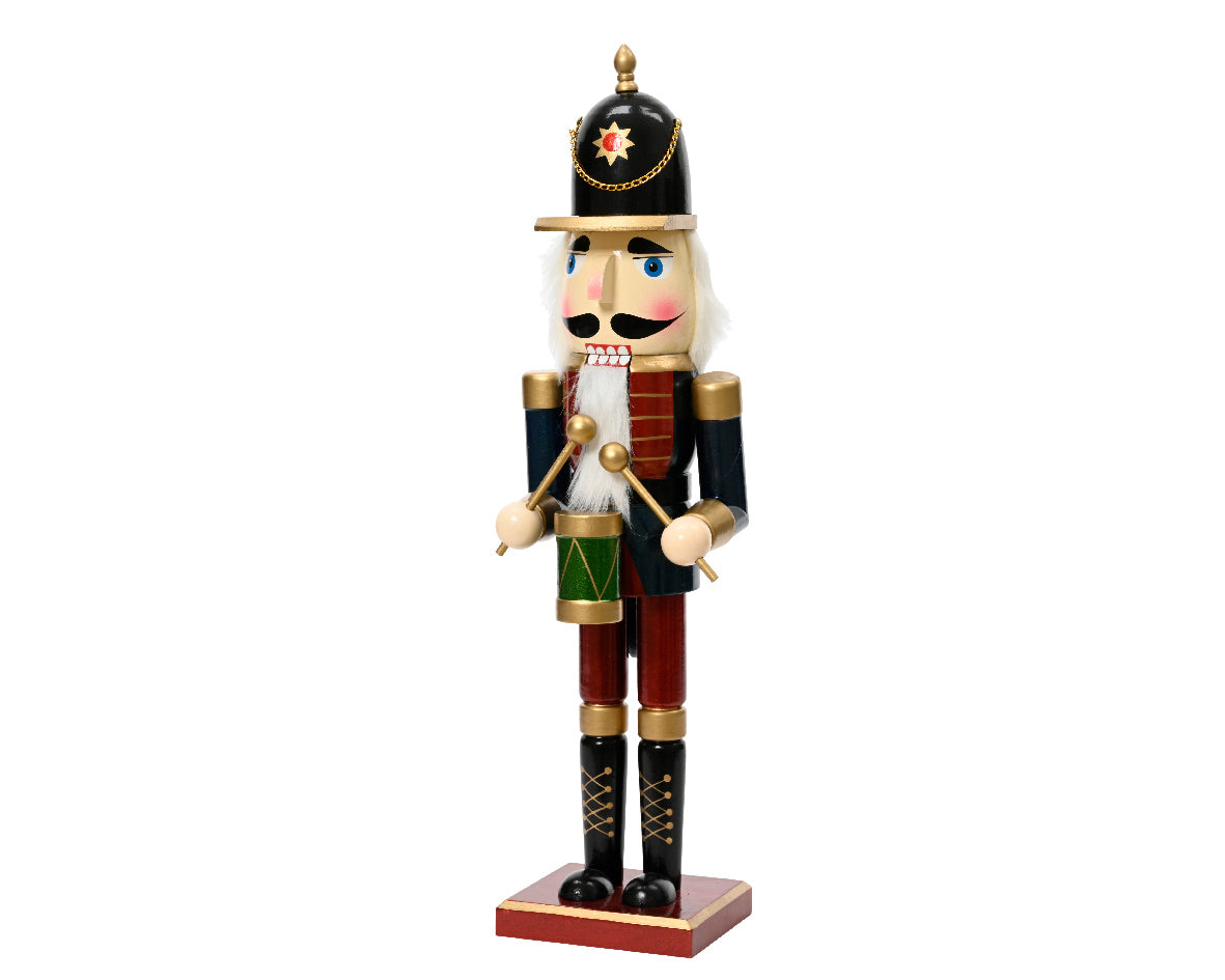 Scopri il nostro schiaccianoci in legno di abete, realizzato con materiali sostenibili e certificati FSC 100%. Questo elegante schiaccianoci blu scuro, alto 50 cm, è un'aggiunta perfetta per le tue decorazioni natalizie. Con un tamburo in dotazione, porta un tocco di tradizione e stile nella tua casa durante le festività.