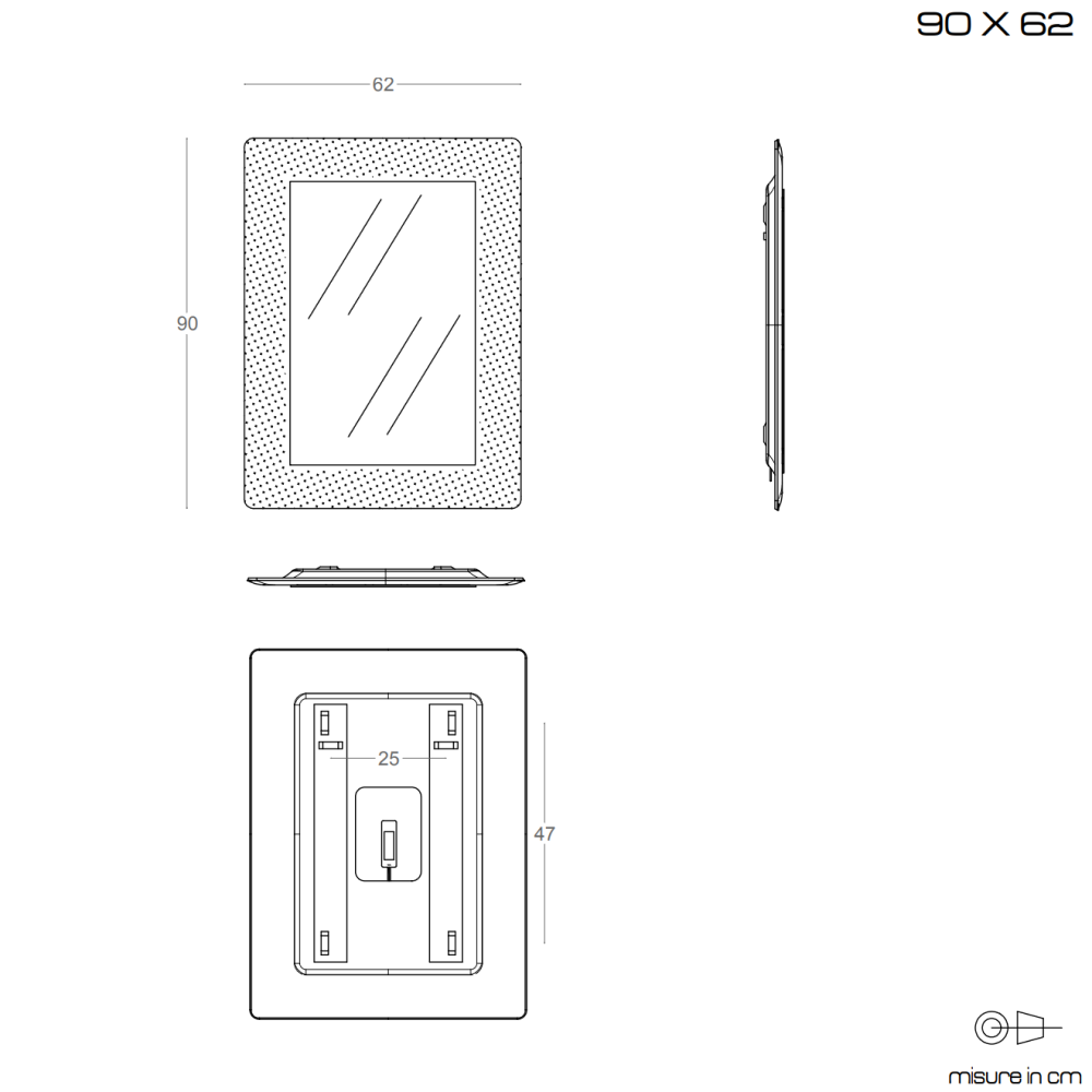 Lo specchio con cornice in graniglia di vetro bronzo è un pezzo unico, moderno ed elegante. La cornice in vetrofuso con graniglia color bronzo rende l'ambiente affascinante e dinamico, l'illuminazione a led crea delicati giochi di luce. Lo specchio è ancorato ad un telaio perimetrale in pvc. Questo specchio da parete è ad installazione reversibile e disponibile in finiture diverse. L'illuminazione led integrata ha un grado di protezione IP44, adatto per un utilizzo in sicurezza anche nella stanza da bagno.