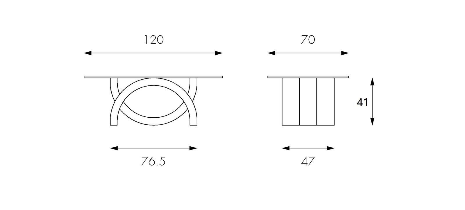 Tavolino con top in vetro temperato e gambe beige/grigio 120x70x41h cm