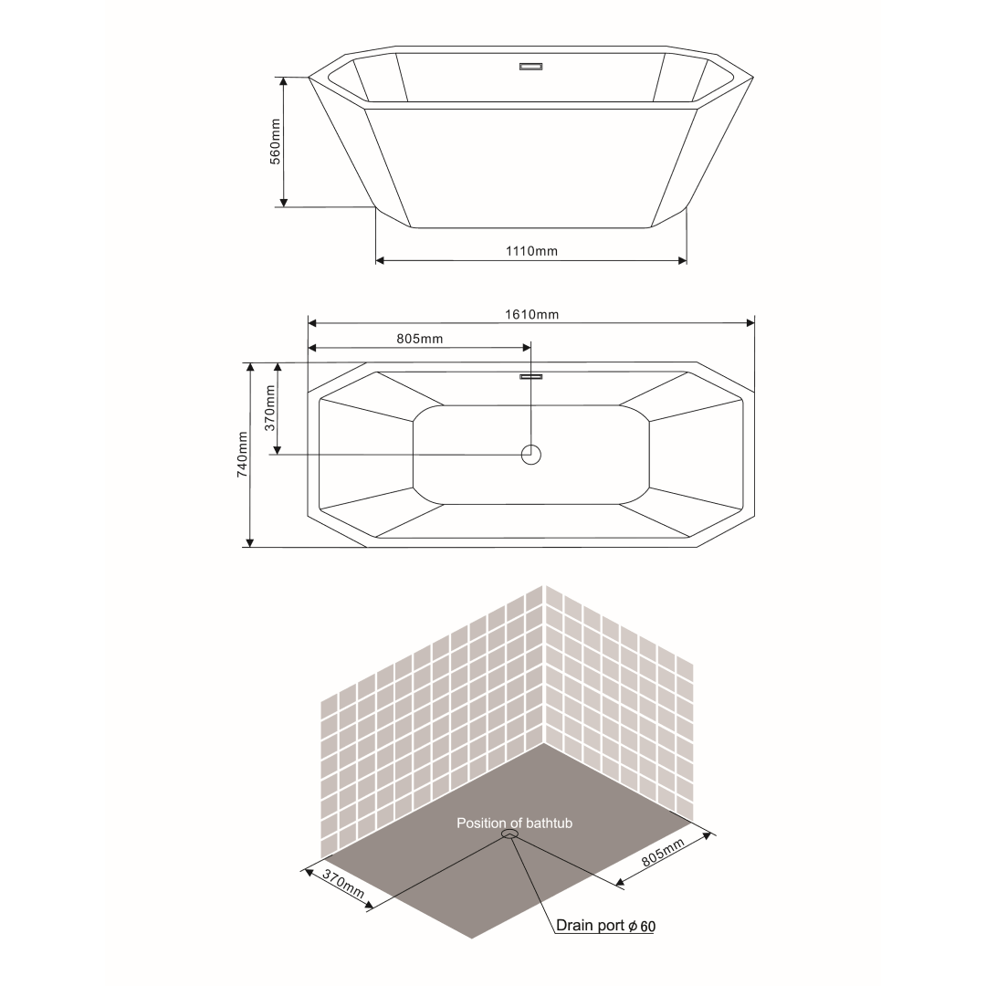 Una moderna vasca da bagno in acrilico bianco dal design moderno per rendere l'ambiente adeguato a tutte le esigenze. La particolare forma ottagonale posizionata al centro della stanza, renderà l'ambiente raffinato e di design. La vasca è predisposta con il foro per il troppopieno e va abbinata a gruppi vasca a pavimento. L'acrilico è un materiale facile da pulire e vi permetterà di regalarvi un bagno caldo e rilassante in qualsiasi momento. Piletta di scarico inclusa.