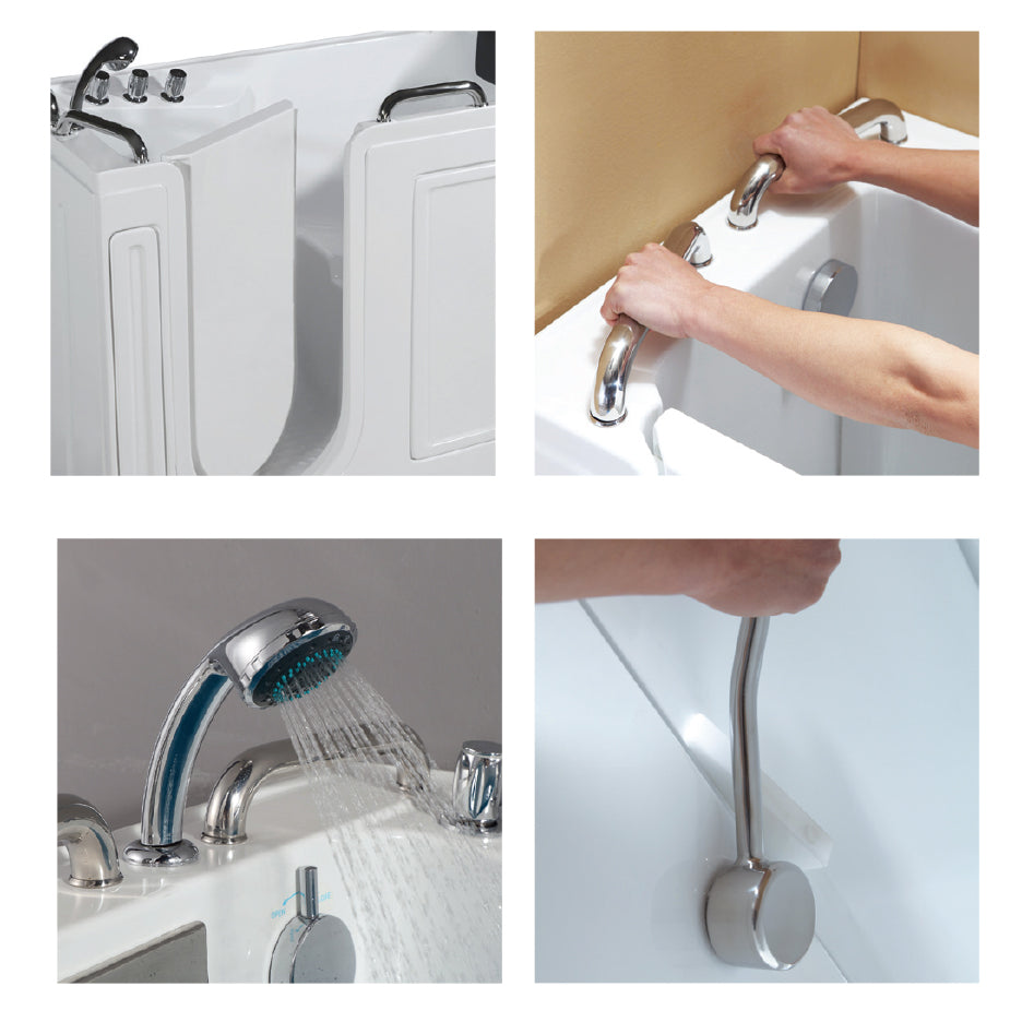 Vasca fornita con due lati aperti per installazione ad angolo. Per installazione nell'angolo destro acquistare art.151-V1019-SX. Per installazione nell'angolo sinistro acquistare art.151-V1019-DX. Per installazione a centro parete acquistare art. 151-V1019-CP, fornita con un solo lato aperto. Dimensioni mm: 1334 x 673 x h 1016. Completa di rubinetto, doccetta, 3 maniglioni e 1 cuscino poggiatesta. Apertura porta verso l'interno e seduta a destra. Capacità max acqua 355 litri, altezza scalino ingresso 100 mm, altezza seduta 450 mm. Fornita di flessibili Diam. 1/2" per il collegamento dell'acqua e tubo di scarico 2"; accertarsi che la predisposizione di mandata e scarico ricadano all'interno dell'ingombro vasca.
